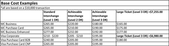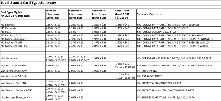 The information below summarizes the available discounts and potential savings to be achieved by taking advantage of Level III transaction data rates.